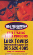 The message "Who Played Who? Protect Yourself " encourages the target audience to receive free HIV testing and condoms. A local toll-free number is provided.