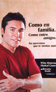 A Hispanic personality figure is used to convey the Spanish language message of feeling among family and friends when using their hospital services.